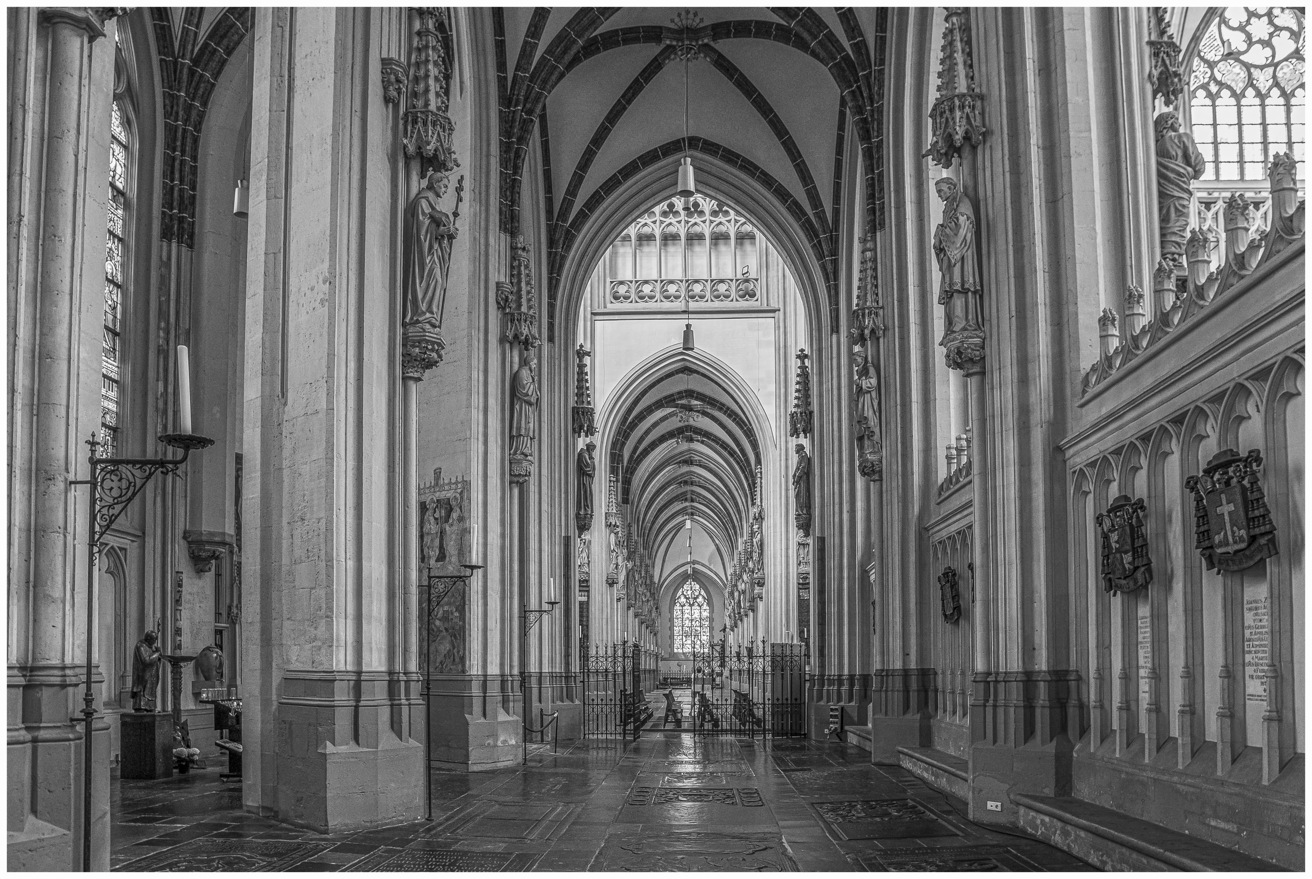 2025-2025De Kathedrale Basiliek van Sint Jan Evangelist, gewoonlijk aangeduid als de Sint-Janskathedraal, in de binnenstad van 's-Hertogenbosch wordt veelal beschouwd als het hoogtepunt van de Brabantse gotiek. De buitenkant levert met zijn gulle ornamenten, zoals de dubbele luchtbogen met de 96 luchtboogfiguren en de reliëfs boven de ramen, een treffend beeld op van de versieringsdrift van de late gotiek. De Sint-Jan is een bouwwerk dat volstrekt uniek is in de Nederlandse kerkelijke architectuur.